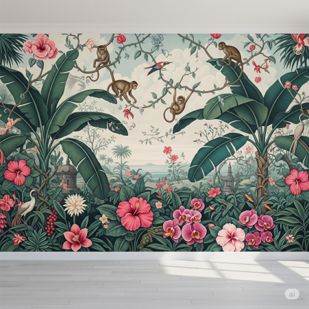 Unlike a physical painting that might get cut off by a door frame or a window, digital murals are “composed” for the specific wall. Elements (like a baobab tree or a geometric border) can be dragged and dropped in the software to ensure they sit perfectly between architectural features.