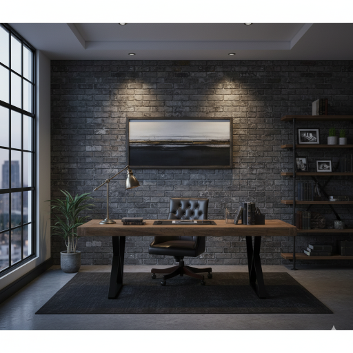 If your style is more contemporary, explore wallpapers that mimic raw materials. Faux concrete, exposed brick, or rusted metal patterns can give your office an edgy, industrial vibe. This works especially well in spaces with minimalist furniture and clean lines, creating a striking contrast between old and new.