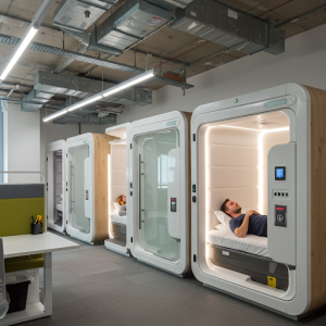 A modern trend in the organization of rest rooms includes an innovative solution – sleep capsules, where employees can take a short nap without leaving their workplace.