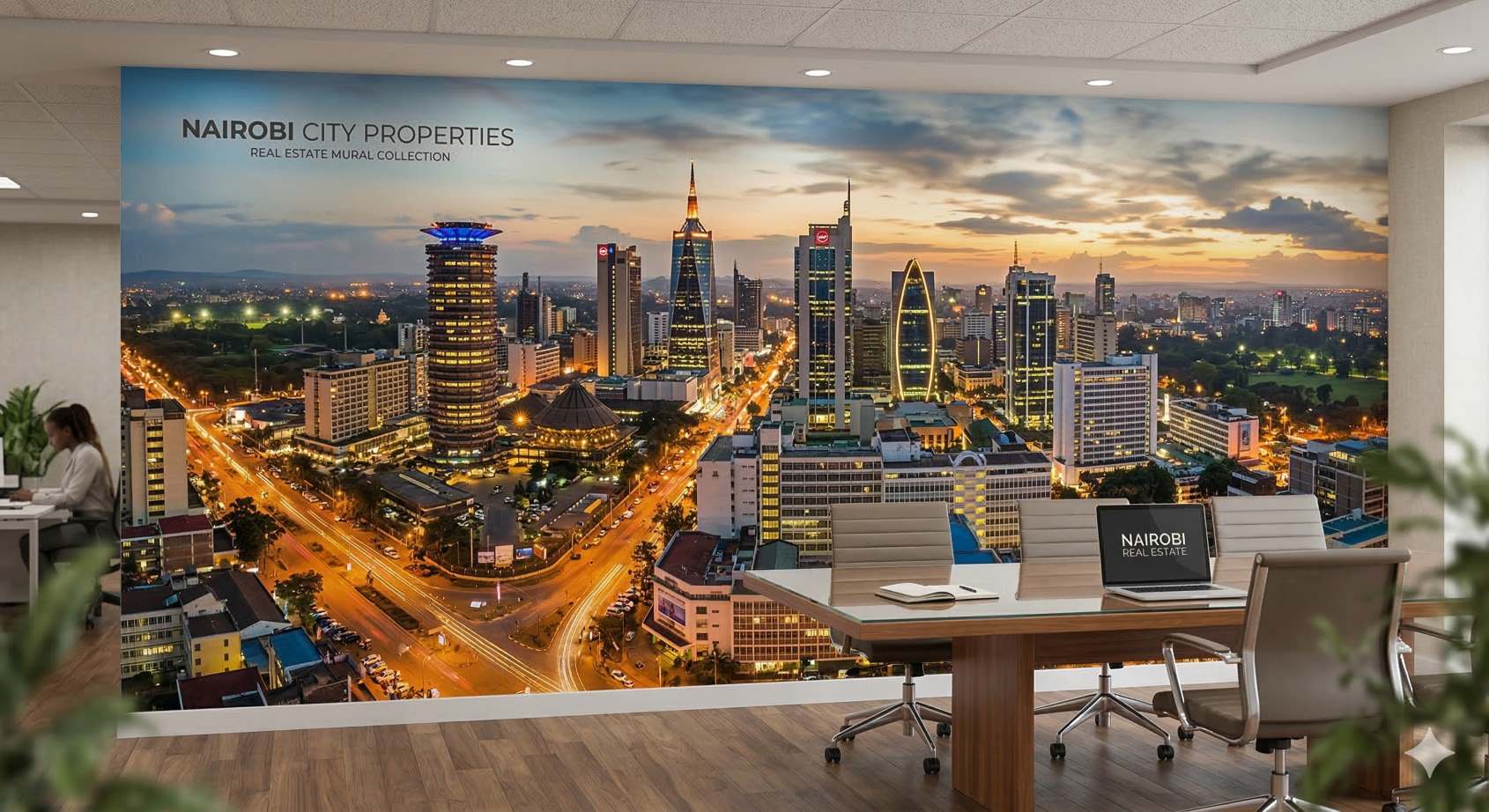 Instead of telling a client you know the city, a high-definition aerial mural of the local skyline shows you are the definitive expert. In a market like Nairobi, featuring the silhouette of the KICC or the Westlands skyline proves your deep regional roots. This immediate visual evidence establishes geographic authority, making your market knowledge tangible and undeniable to every visitor.