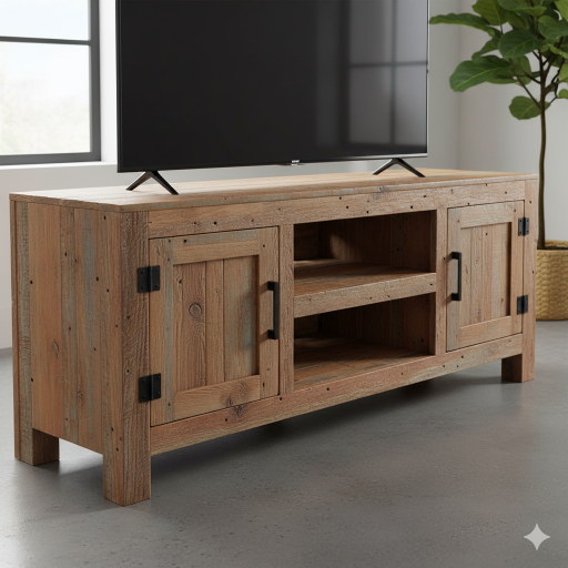 A reclaimed wood TV stand offers a rustic and timeless look that can add character to any living space. They are often durable and eco-friendly, as they are made from recycled materials. Many options are available with built-in storage, such as drawers and shelves, to help keep your entertainment area organized.